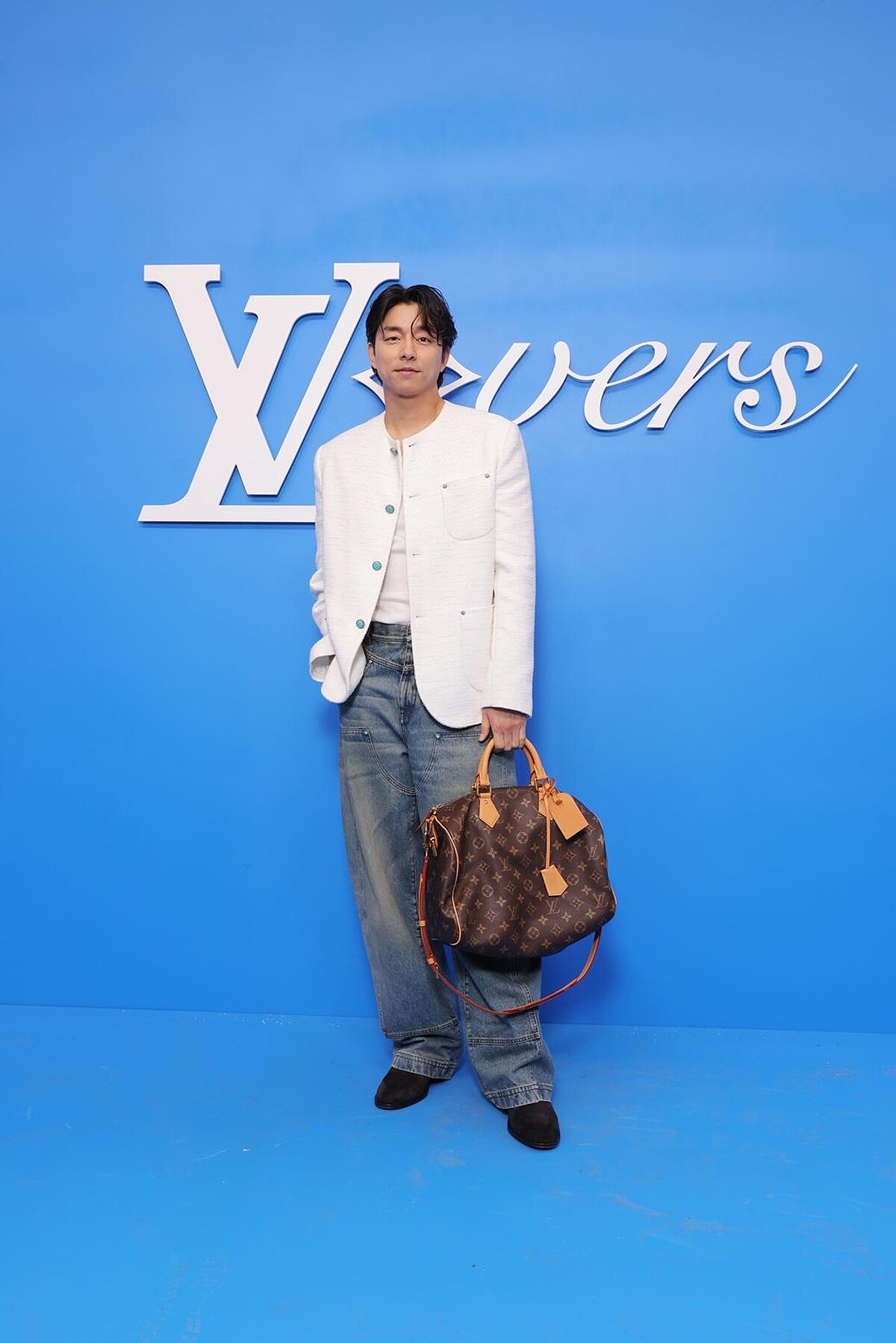 孔劉以上身選用白色帶有軍裝感的造型搭配經典印花 Speedy P9,微寬鬆的線條輪廓搭配經典手袋,更營造屬於他的浪漫不羈印象。