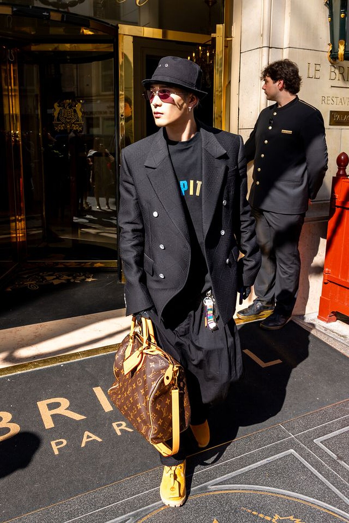王嘉爾總是在鏡頭前展現獨具風格的造型,此次他也以現代紳士的造型亮相,全黑色調搭配經典印花 Speedy P9,為造形增添亮點,率性不羈的個人魅力直接拉滿!