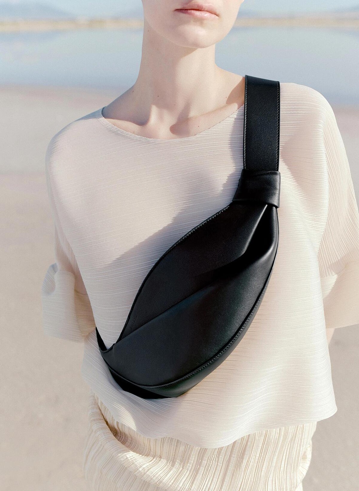 尹瑞娥近期的私服裡屬這個法國小眾品牌出鏡率最高!她以潔白的背心洋裝,搭配Polène 2025年新推出的Neyu包款,長型的柔軟包身可以自然貼合身形,看似隨性的皺褶與扭結,則是從容優雅的精髓,與尹瑞娥私下乾淨脫俗的氣質很相襯。