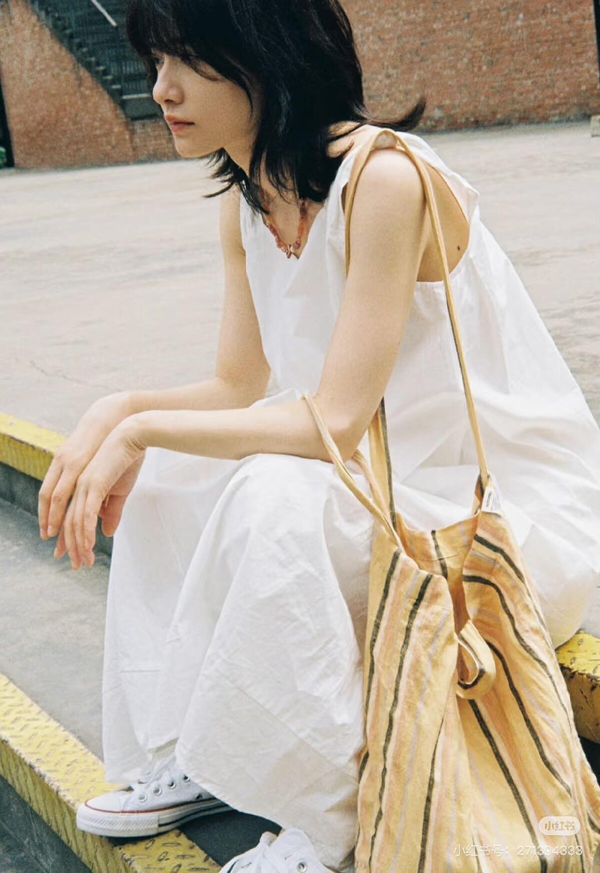 在柴碧雲的私服穿搭裡,帆布包幾乎是標配,搭上清爽的背心長裙與帆布鞋,這樣隨性又放鬆的氛圍,展現她最純粹舒心、清澈透明的清冷面貌。