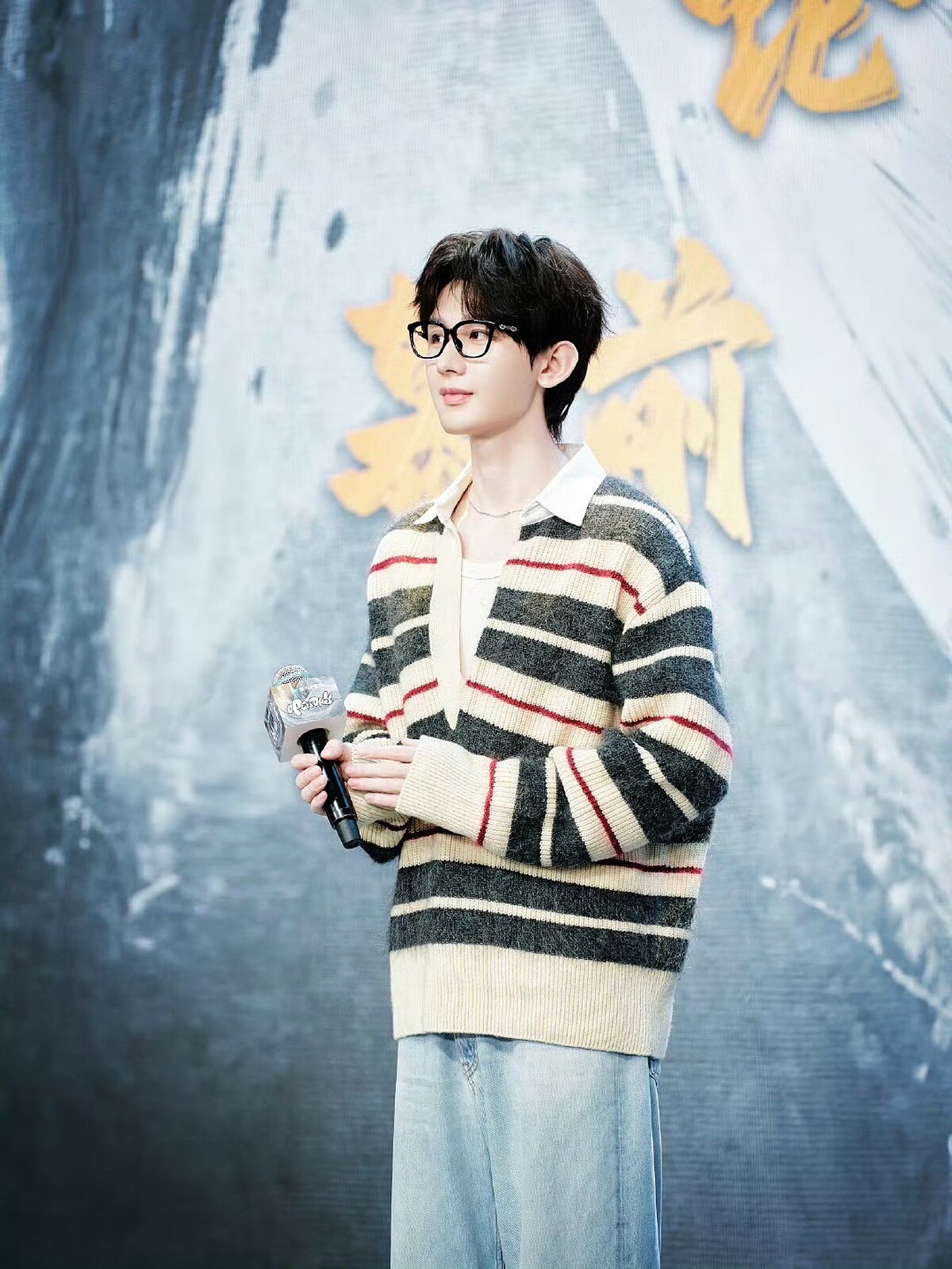 成毅之所以能夠營造出清爽少年感,少不了學院風的加持,而條紋毛衣向來是其風格的代表性單品,就像是這身的米色毛衣搭配上紅黑條紋,自然就能夠營造出一種文藝又率性的氣息。再加上成毅選擇Acne Studios略帶褪色感的淺色牛仔褲,去平衡掉毛衣的厚重感,再搭配上一副超加分的黑框眼鏡,讓學院風的完成度大大升級,更添質感文青氣質。