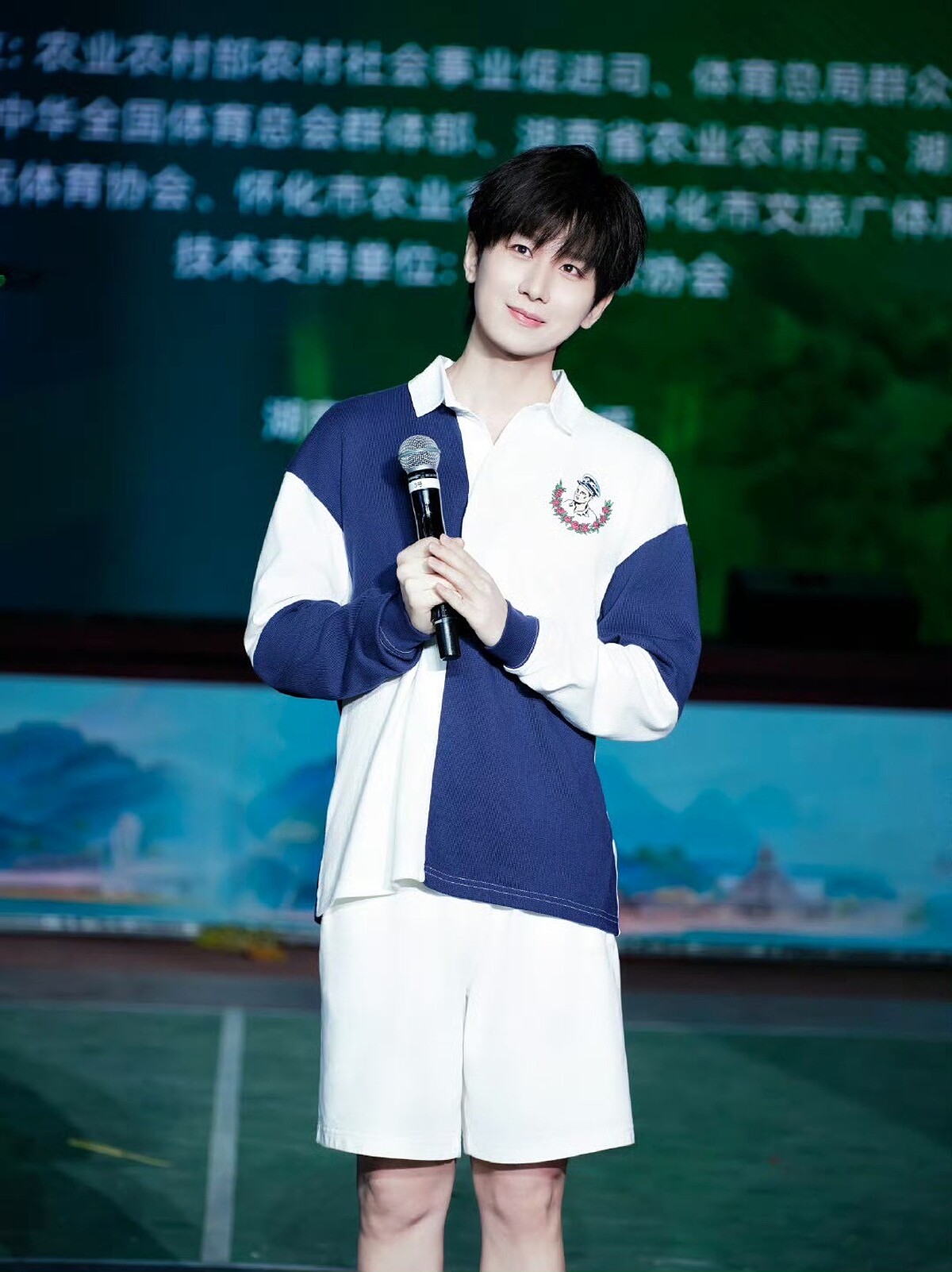 白色與深藍拼接的POLO衫搭配白色短褲,展現的是成毅青春、活力的一面。這樣的穿搭常見於運動場合或是校園風造型,但在他身上卻多了幾分時髦態度。POLO衫胸前的刺繡徽章提升整體質感,捨棄了西裝褲,反而搭配上輕鬆的短褲單品,既不拘謹又兼顧視覺吸引力,完全是「清爽男大生」般的標準穿搭模板。