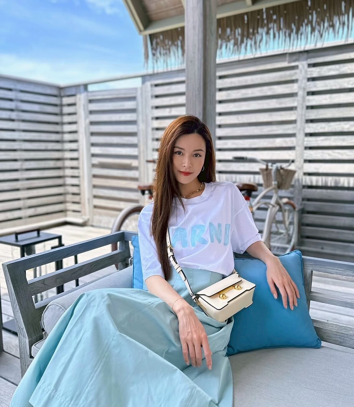 文詠珊私下非常喜歡溫柔的奶白色穿搭,連包款取向上也偏好優雅路線,她私服中出現過的Marni Trunkaroo Bag,就是時尚初學者相當適合入手的單品,是品牌大名鼎鼎風琴包Trunk的變奏款式,相較之下Trunkaroo算是比較小眾了,因此非常不容易撞款。包款的正面翻蓋設有磁扣開合,飾有 Marni 鐫刻字樣與大型鉚釘細節,前後輪廓設計增加立體感,而且尺寸適中,還能夠當成派對手拿包使用。