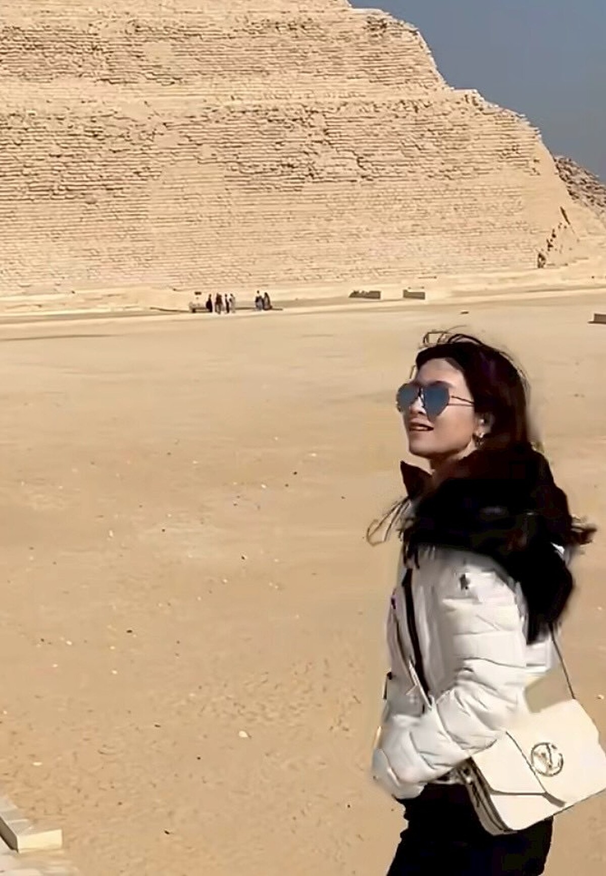 文詠珊近日在埃及沙漠旅行時就背上這顆Louis Vuitton路易威登 Pont 9,包款以巴黎新橋 Pont Neuf 作為靈感,打造經典百搭的圓弧線條,以粒面小牛皮製作,內襯則採用對比色的光滑牛皮,兩側皮革先分別編織,再以純手工縫合,展現精湛工藝,包身正面飾有全新的 LV Circle 標誌,為整體設計增添辨識度與優雅氣息。她搭配淺色羽絨外套,讓整體造型清爽而立體,即使在旅行中也時時刻刻能保有清新氛圍。