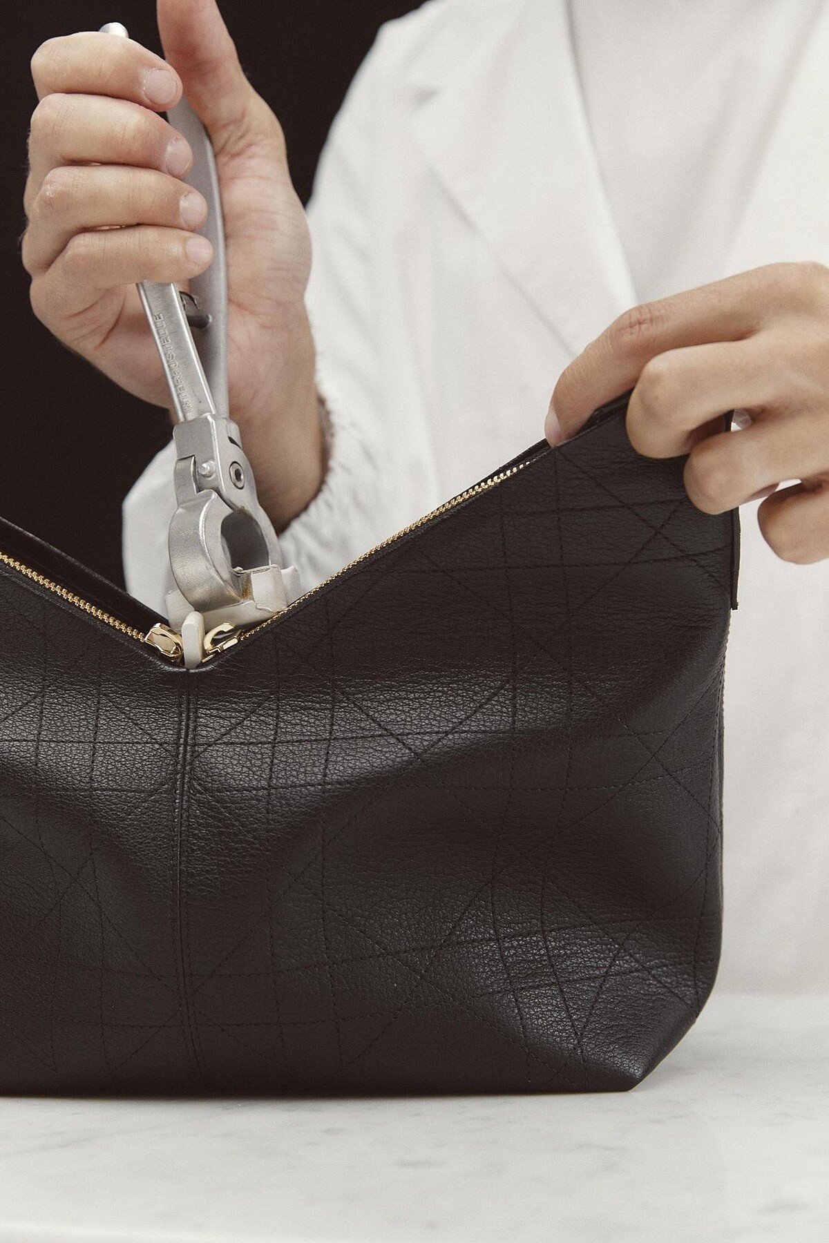 隨著時代推進,Dior 將這一經典符碼加以放大,演化出 Macrocannage,其格紋線條相較於以往,更為粗獷,並帶有建築般的張力。除了比例放大的直覺性,更是一種跨越經典的更新模式。將原本象徵沙龍私密氛圍的符號,帶入了更開放、自由的都市空間之中。