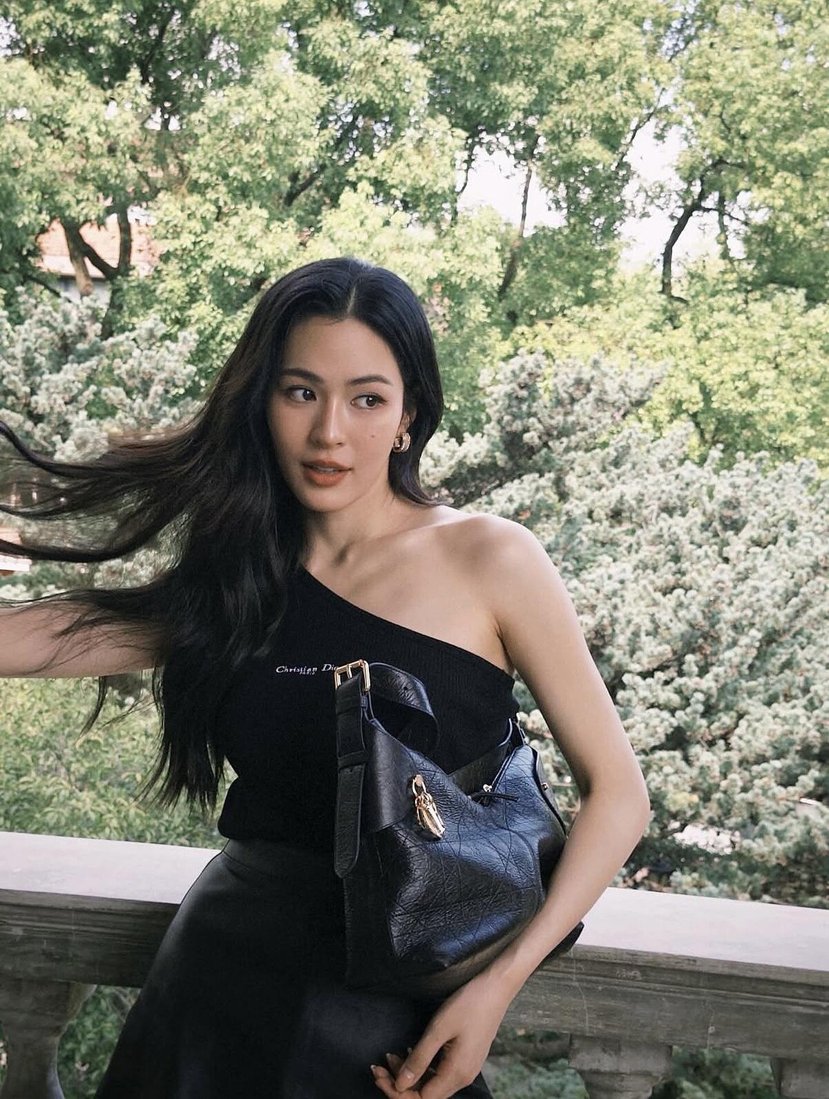 作為Dior的泰國大使Lingling Kwong,本季也同樣受邀出席Dior的巴黎大秀,期間他以黑色斜肩的微性感造型搭配一顆黑色的Dior Voyage包款,呈現他優雅公主的迷人樣貌,漂亮極了。