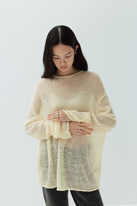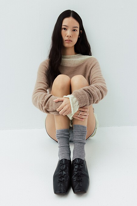 與傳統厚重毛衣不同,Studio Doe 透過紗線的透氣性與剪裁比例的拿捏,使毛衣保留足夠的溫度卻不顯臃腫。無論單穿或疊搭外套,都能在日常與正式之間自由轉換。那份剛剛好的輕盈,讓冬天不再是層層堆疊的負擔,而是一種自在而有型的狀態。