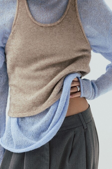這一季,品牌從「輕盈卻有型」的理念出發,運用高級 Cashmere 與細緻羊毛紗線打造出柔軟親膚的觸感。無論是鬆弛的落肩設計、帶有空氣感的針織結構,或是富有立體層次的織紋細節,都讓毛衣呈現出自然的流動線條。穿上它,就像讓一層柔光輕覆在身上,溫柔卻充滿力量。