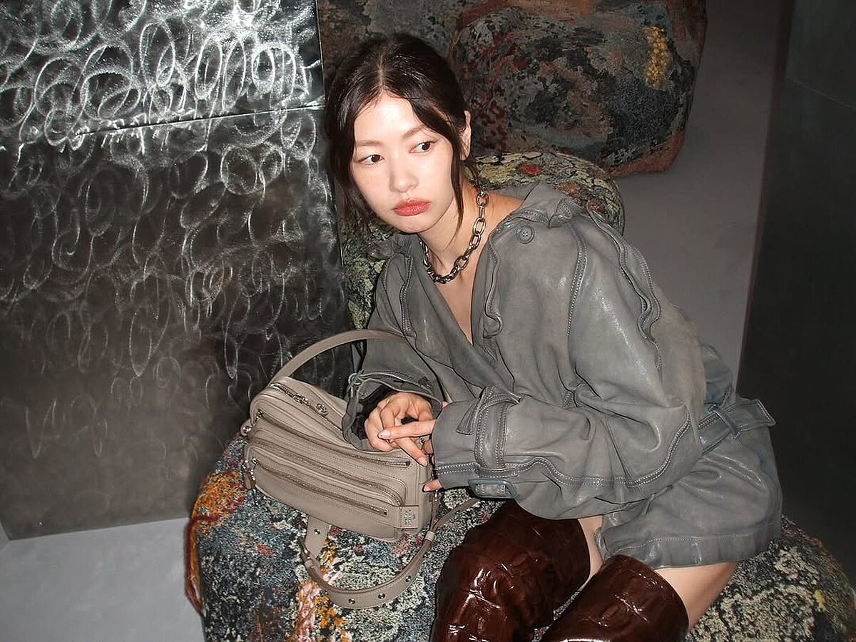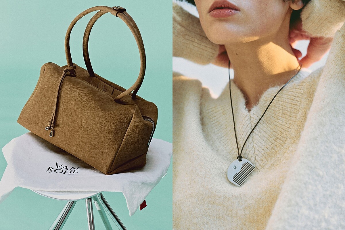 庭沼珉另一款特別適合旅行、日常的包款,也一秒燒到了編輯!這顆來自韓國小眾品牌VAN ROHE的棕色肩背包,為非常實用的長方型拉鍊包結構,荔枝紋絨面革營造出一種介於復古做舊與高級質感的氛圍,水滴狀金屬掛飾作為點綴之外,庭沼珉還另外掛上了品牌推出的「金屬梳子掛飾」,近期在代購圈也是十分火紅的單品。