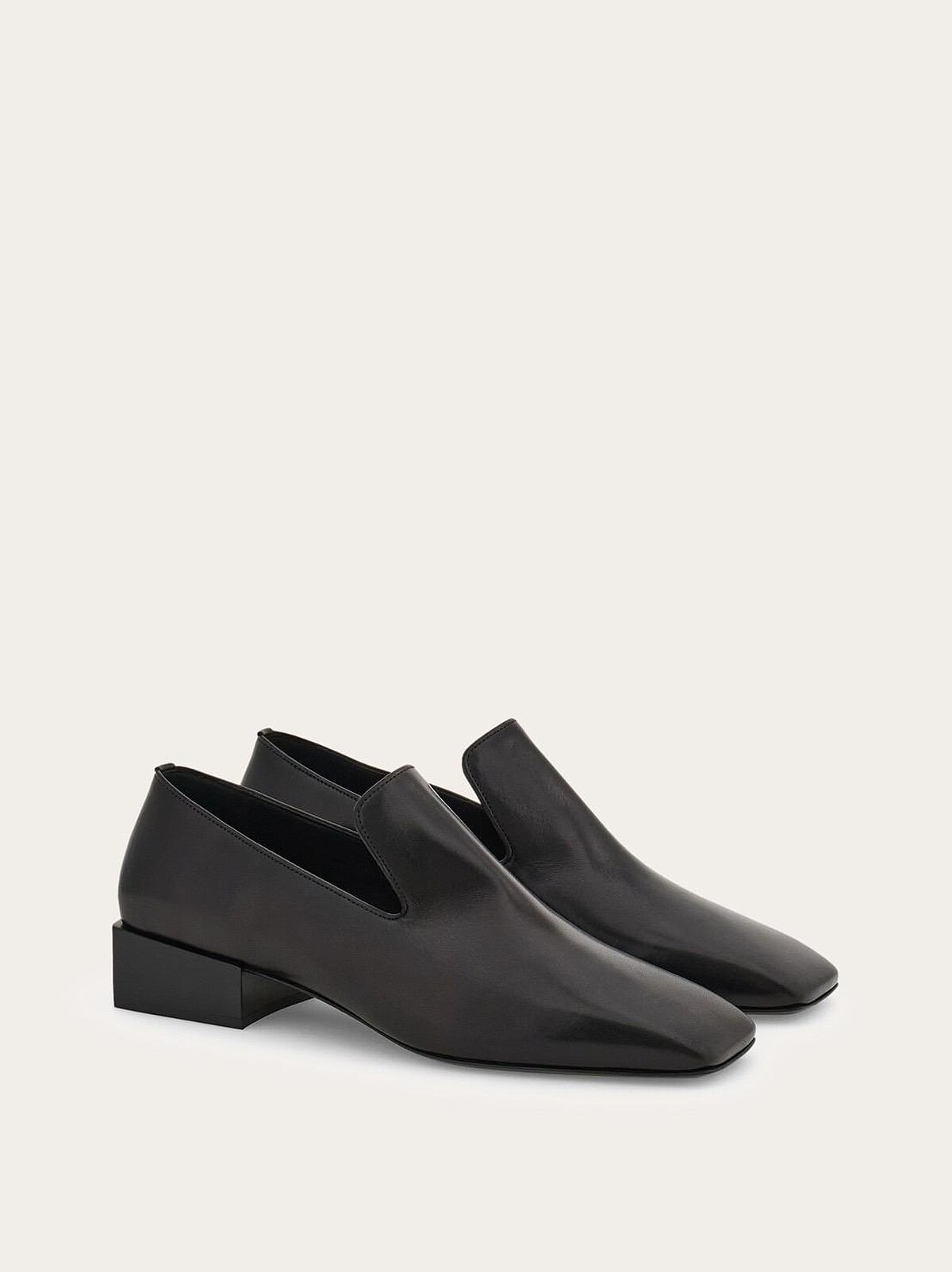 Ferragamo這雙方頭樂福鞋也是Hailey Bieber的心頭好之一,源自男裝的方正輪廓,配上一整片柔軟皮革的鞋面,詮釋剛柔並濟的鬆弛感,加長、加深的鞋舌也是一個特點。