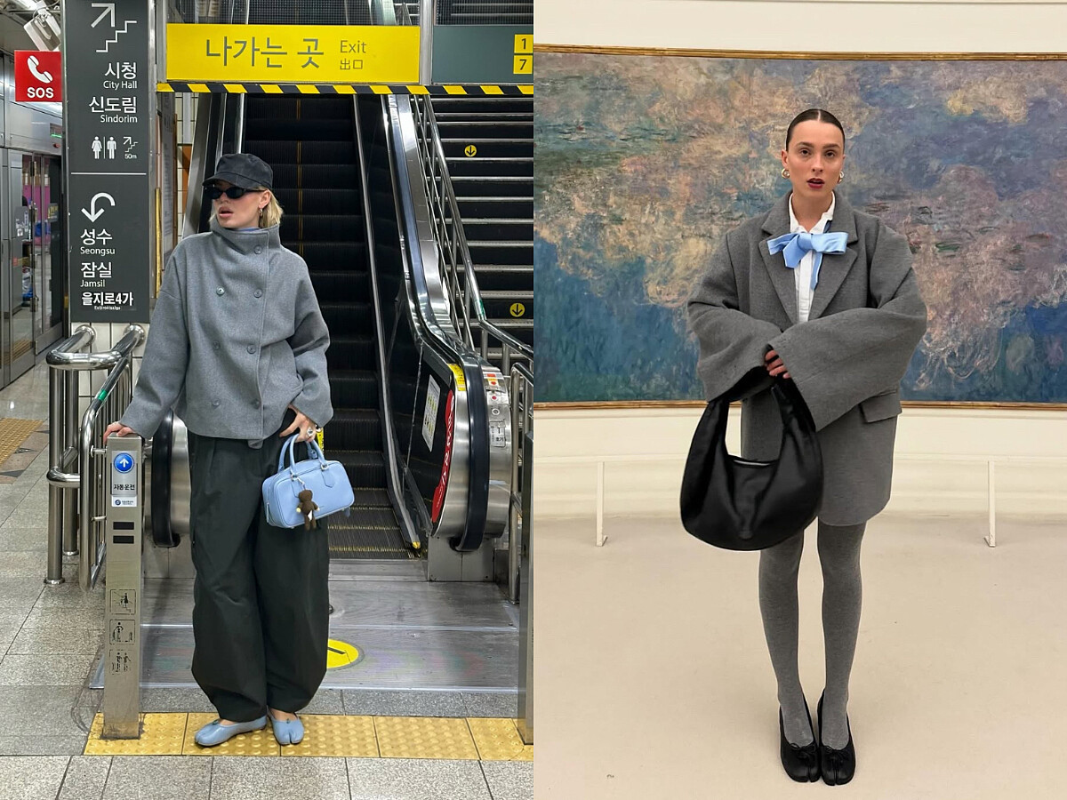 中性低調的灰色系不挑人也不挑膚,經典而不會退流行,若以灰色作為穿搭的基礎,不難發現它能屈能伸的特性,可以與各種顏色輕鬆組合!其中「灰色+藍色」是所有時髦精們2025年秋冬必學的穿搭配色技巧之一,將造型簡單控制在這兩種顏色內,便可以使穿搭變得清冷高級、靜謐之中帶點俏皮,還能營造出宛如韓劇女主角的氛圍感!