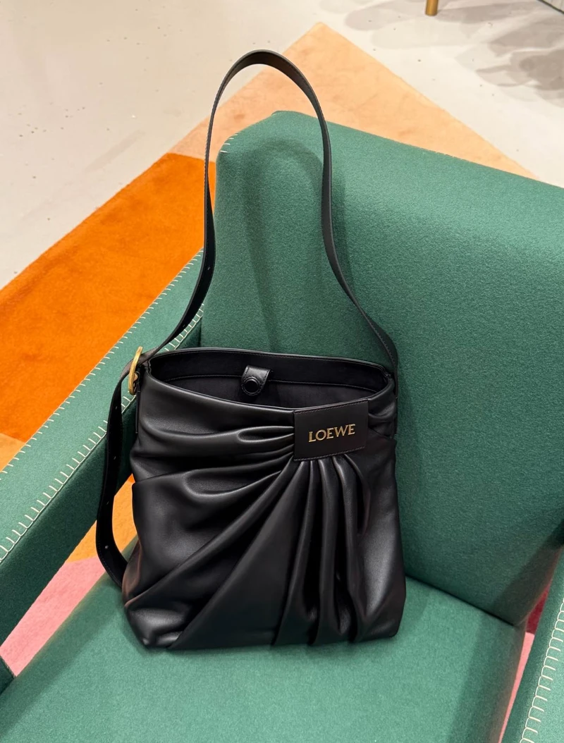 Loewe適逢設計師轉換期間,新任雙人組設計師Jack McCollough和Lazaro Hernandez所操刀的首個系列為2026春夏季度,而在2025年末時刻,新品當中藏著一款極富潛力的新手袋「Draped Tote」,絕美的皺褶皮革設計正是延伸自前任設計師Jonathan Anderson所創造的爆紅皺褶元素,憑著一股內行人才懂的高級感,默默的火出了圈!
