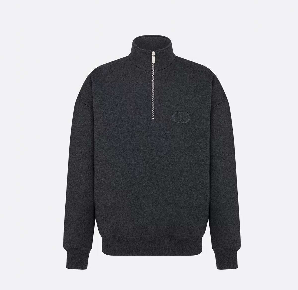 Dior Quarter-zip 展現極度低調的優雅氣質。深灰色刷毛棉質、寬版剪裁、壓印 CD Icon 標誌,沒有多餘裝飾,卻每一個細節都精準落於氣質之中。這不是用來運動的上衣,而是以運動語彙重塑現代時裝輪廓。 搭配牛仔褲或俐落長褲,就能完成一種「低調但高級」的都市造型。