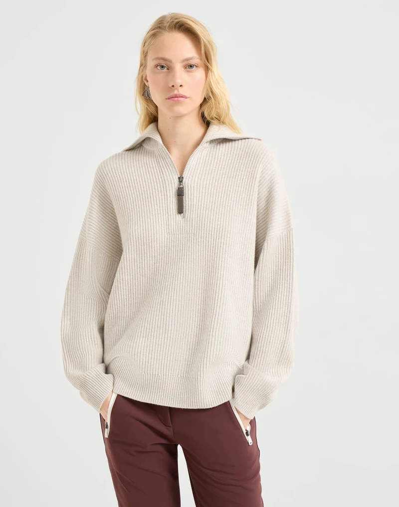 Brunello Cucinelli 羊絨英式羅紋半拉鍊上衣