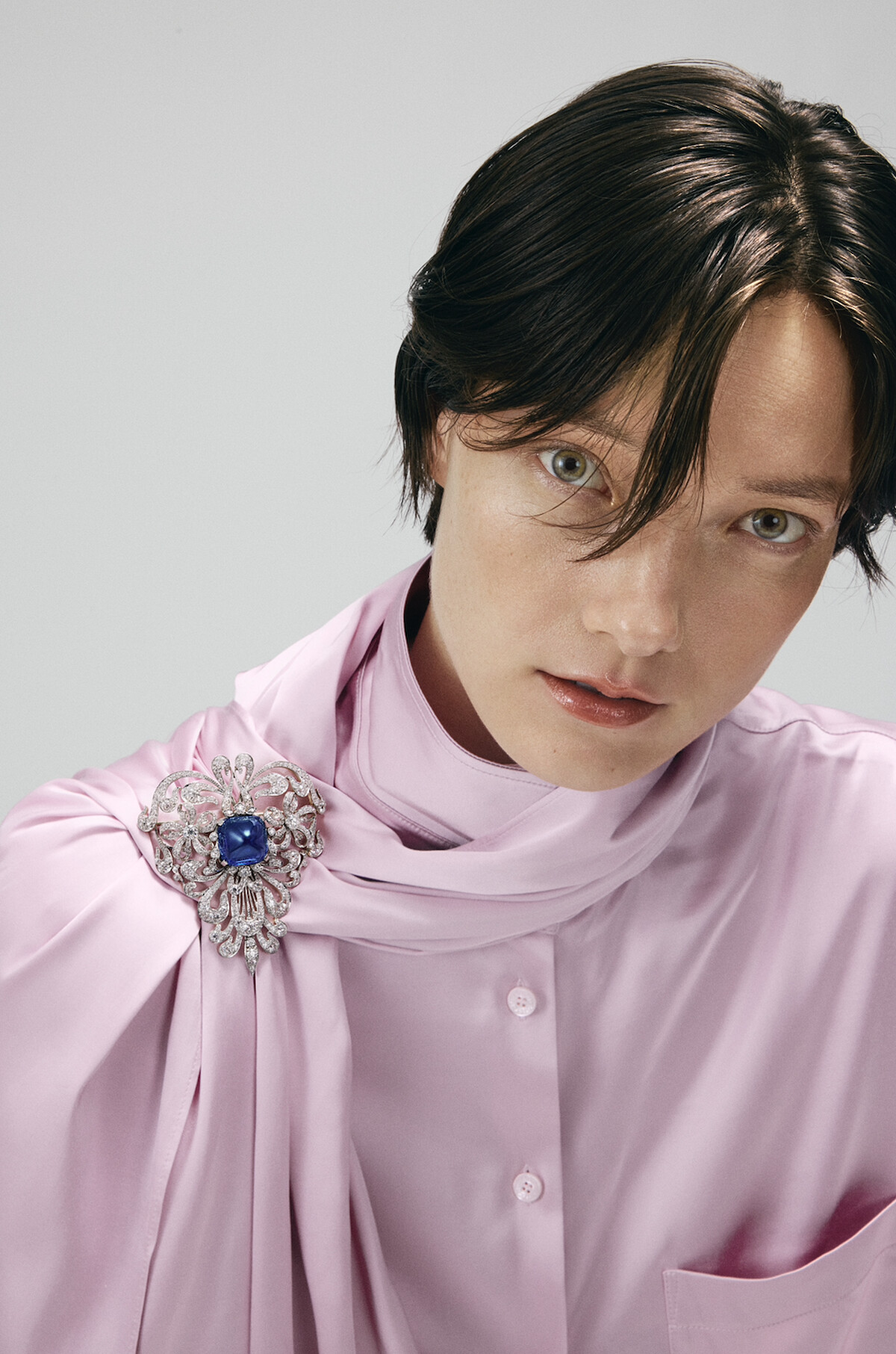 呈獻美國名門望族范德比爾特(Vanderbilt)家族珍藏的美好年代(Belle Époque)古董珠寶。此胸針來自蒂芙尼(Tiffany & Co.),鑲嵌「范德比爾特藍寶石」 42.68克拉糖塔切割喀什米爾藍寶石與鑽石,20世紀初製
