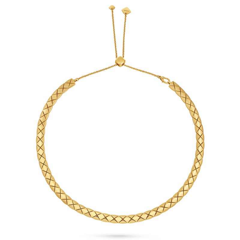 COCO CRUSH 柔軟頸鍊 18K 黃金菱格紋圖騰。 建議售價 NTD 1,063,000 元