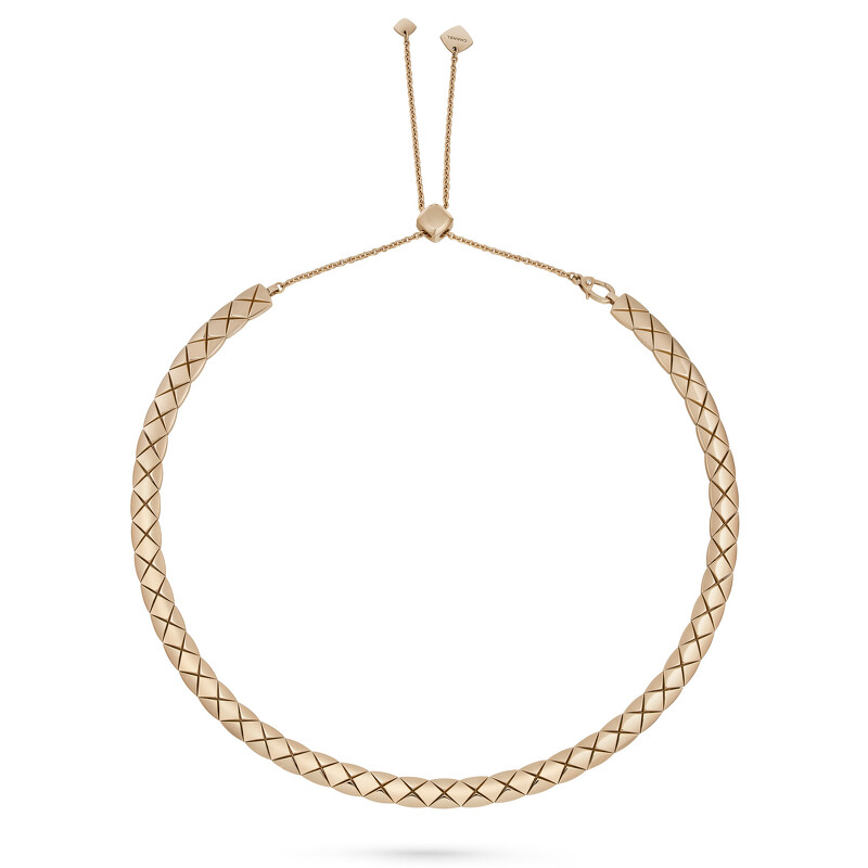 COCO CRUSH 柔軟短項鍊 18K 黃金菱格紋圖騰。 建議售價 NTD 946,000 元