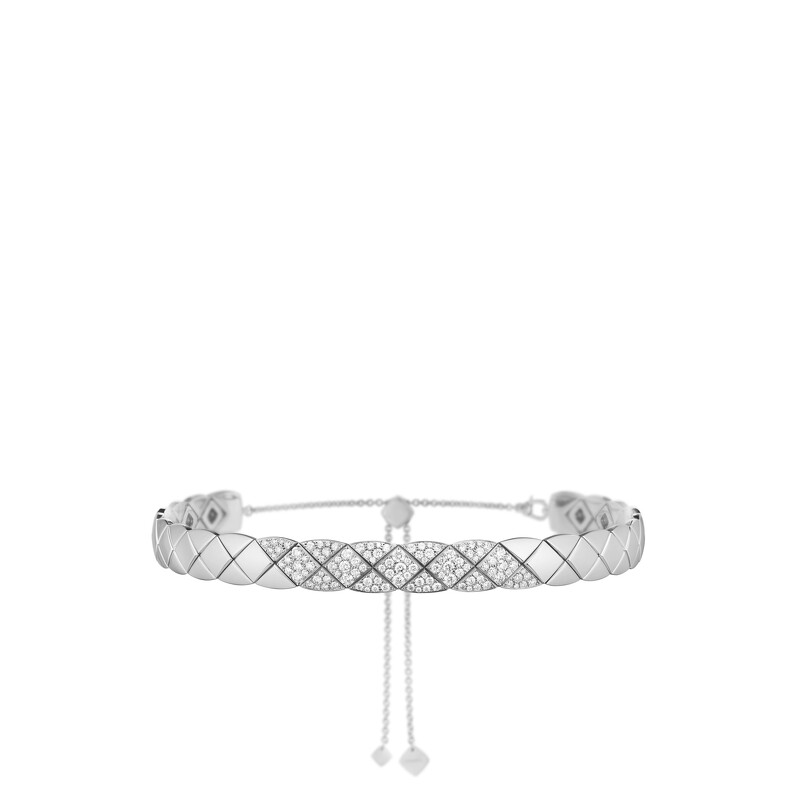 COCO CRUSH 柔軟短項鍊 18K 白金菱格紋圖騰,鑲嵌 103 顆總重約 1.84 克拉明亮式切割鑽石。 建議售價 NTD 1,548,000 元