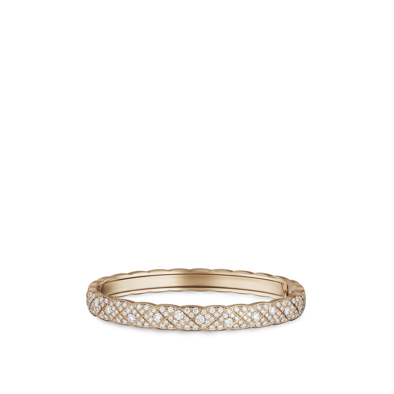 COCO CRUSH 手環 18K 黃金菱格紋圖騰,鑲嵌 308 顆總重約 4.66 克拉明亮式切割鑽石。 建議售價 NTD 1,737,000 元