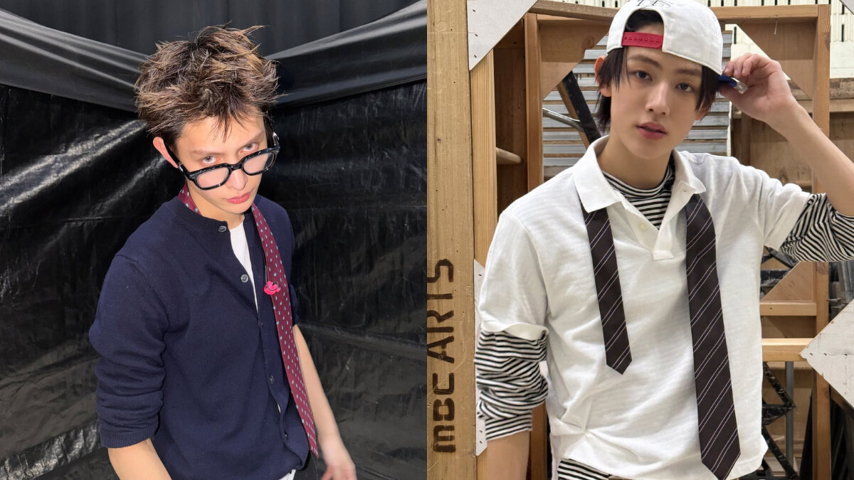 Cortis的成員趙雨凡、嚴成玹也採用了同樣的方式,直接將領帶掛在肩上,越隨性越有Z世代的態度!