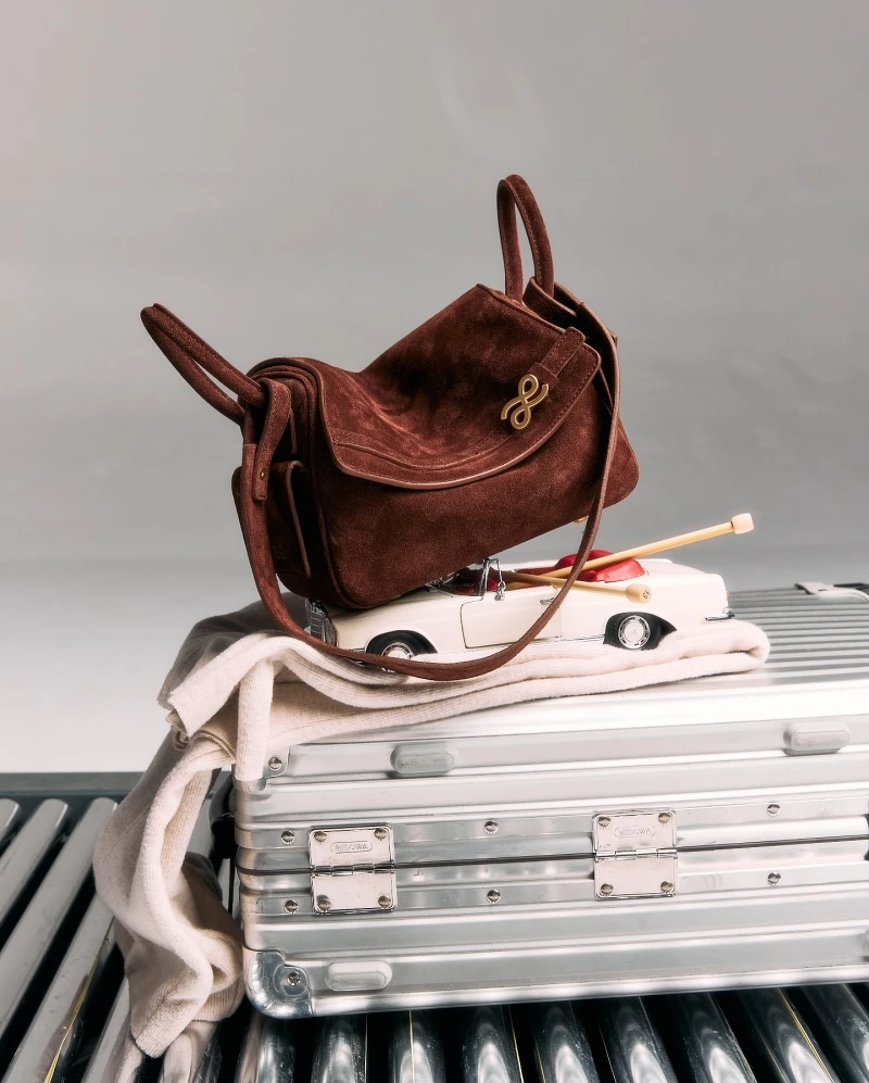 它們家近期比較有名的款式是 ROAMER SUEDE LIMITED 系列,外型近似可頌包或半月包,包體是純素色,並透過工藝技術讓包包有自然的皺褶,增添層次感,只有在背帶一側有金屬的小 LOGO,整體相當簡約,是一款十分中性的包包,男女生都適用。