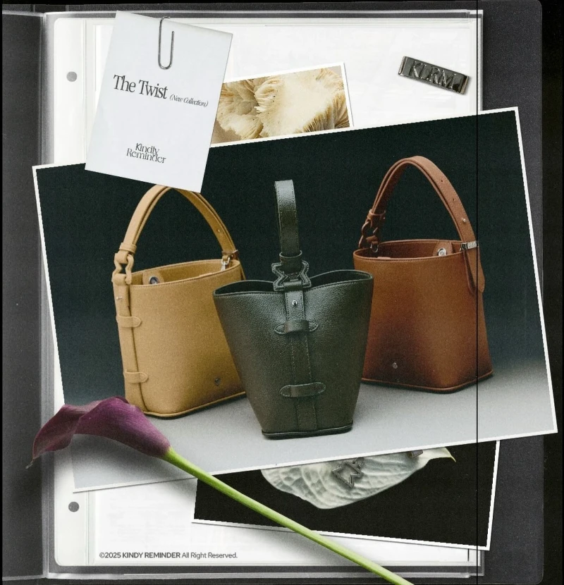 Kindly Reminder 以簡約的設計美感聞名,雖然產品數量不多,但每一款都堪稱經典,適合上班或穿搭風格較成熟的人使用。它們家討論度比較高的兩款包包是 The Twist 水桶包與 Jennie Crossbody 水餃包。