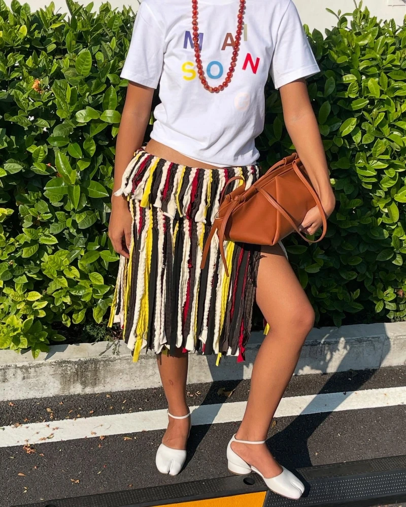 Le Voilier bag 則是 Maison G 近期的爆紅款,它的外型狹長,正面有類似摺紙概念的三角型並印有品牌名,背帶尾端採用繩結設計,富有垂墜感。不僅如此,這款包包先後推出不同的顏色與材質,每一款都有各自的特色,相當有魅力。