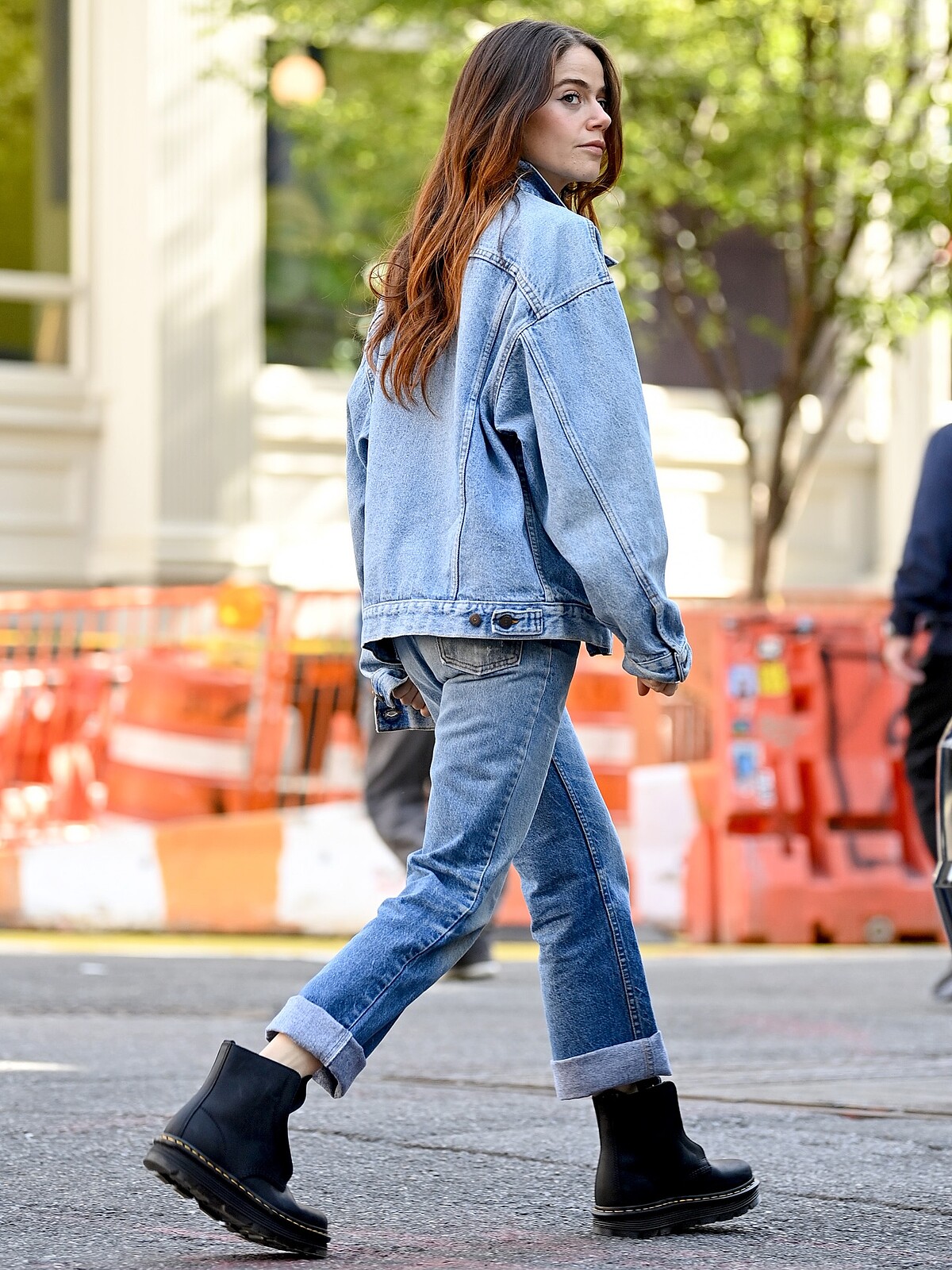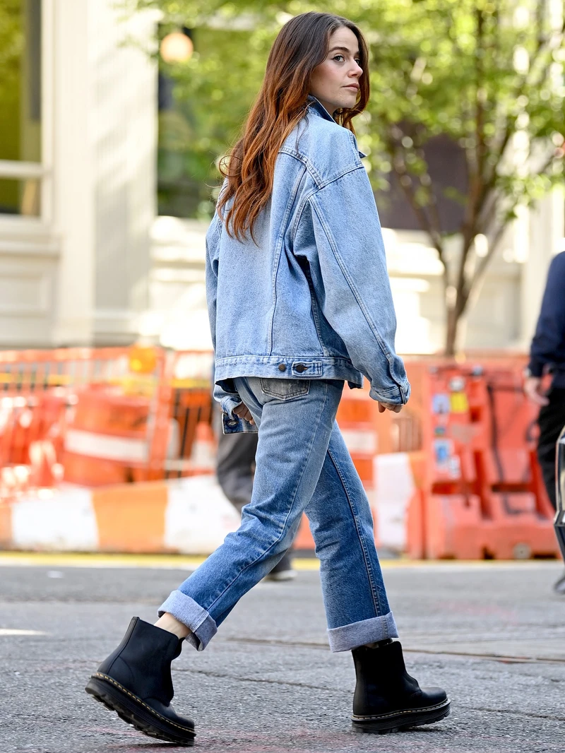 雖然馬汀鞋是皮鞋,看似只適合搭配正裝,但憑藉著簡潔的設計與版型,與牛仔褲搭配時不僅不會有違和感,反而呈現自然的協調感。這種搭配方式也適用於休閒正裝,透過馬丁鞋的正式氛圍去淡化牛仔褲的隨性態度,讓整體風格取得良好的平衡。