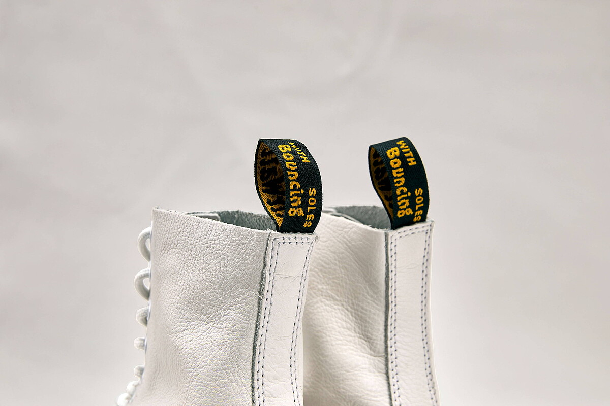 馬汀鞋的黃黑拉環、凹槽邊緣與黃色縫線已然成為品牌的標誌性象徵,極具辨識度卻又不會過於繁雜的設計,深受消費者的喜愛。而中性、簡潔的外型,使它得以符合各種群體的審美,不分性別皆適合。
