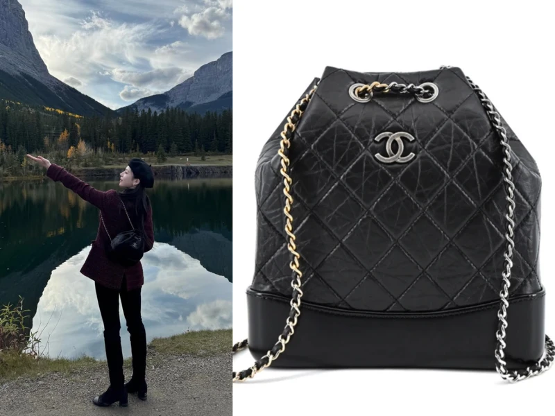 旅行時,還是背上一只後背包解放雙手最方便實用!車茂熙背上的Chanel Gabrielle後背包正是很好的選擇,實用的水桶包型配上皮穿鏈帶,休閒又不失優雅質感!