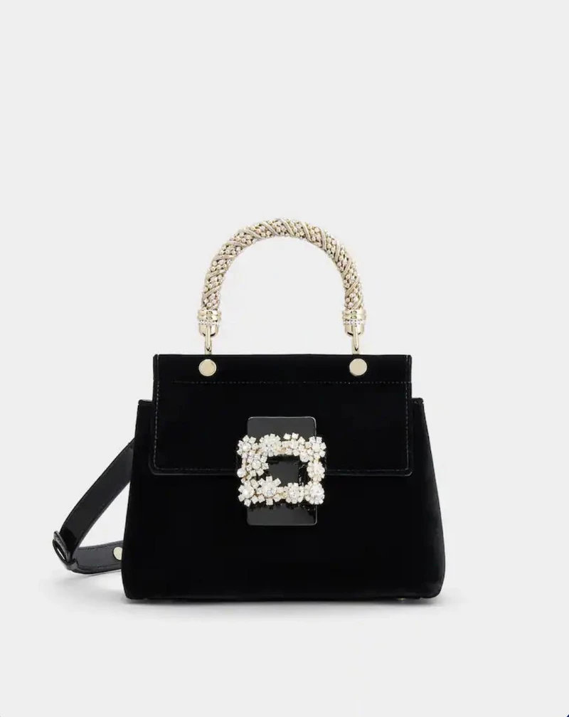 打造出車茂熙公主般精緻華麗的氛圍,Roger Vivier的加入也是其中重要的一環。Roger Vivier經典的花鑽方扣手提包,以閃亮的扣飾和手提把設計增添奢華氣息,不論是約會、參加派對晚宴,都會是襯托氣場很棒的搭配選擇。