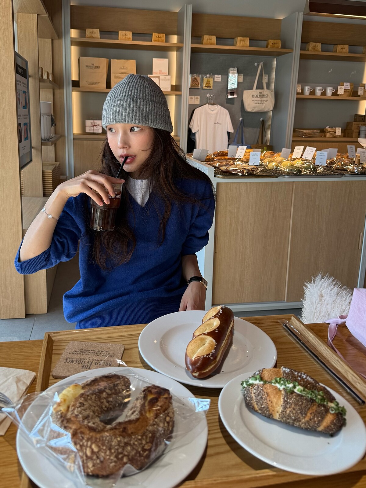 如果覺得紅色太直接,今年不妨試試藍色毛衣。從淺藍到深藍,都是冬季主流色調之一,也更容易延續到日常穿搭,淺藍色能營造清新感,搭配白色長裙或淺色牛仔褲顯得柔和;深藍則帶點穩重氣質,配深色寬褲或剪裁俐落的西裝褲都很合適,藍色雖然不是傳統年節色,但在高彩度配件的點綴下,同樣能保有節慶氛圍,同時多了一份新鮮感。