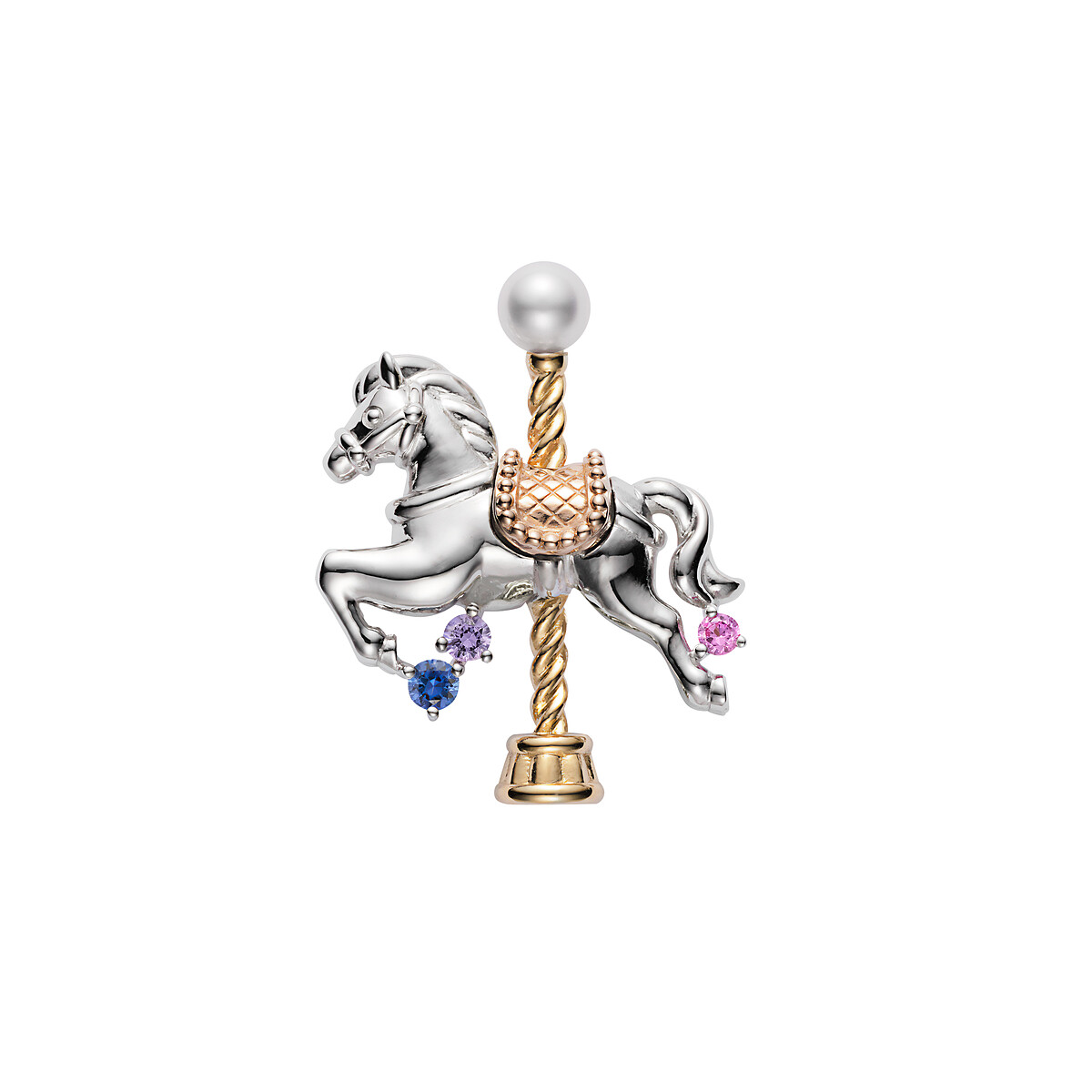 以旋轉木馬為靈感,綴上珍珠與三色藍寶石,寄寓「馬到成功、躍馬向前」,也象徵開啟美好新年篇章的步伐!