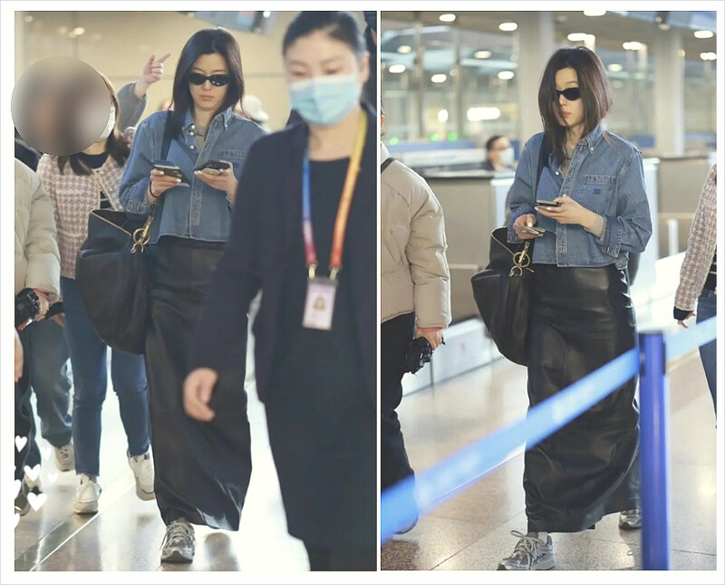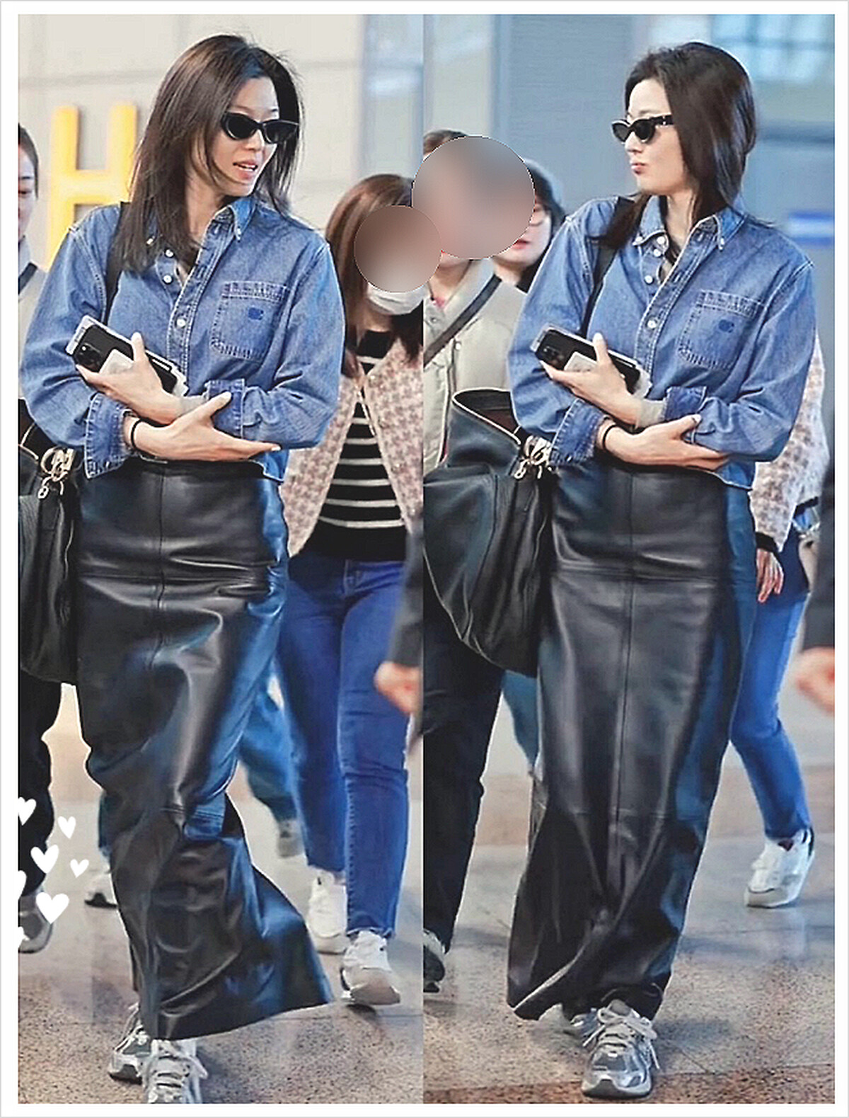 全智賢這套造型,其實很值得日常穿搭參考,她以丹寧襯衫搭配皮革長裙建立整體造型的質感,再用一雙銀灰跑鞋平衡正式感,讓整體看起來既有型又不會太刻意,這種把運動鞋融入日常穿搭的方式,近年在韓國街頭非常常見,跑鞋不再只是運動單品,而是能與皮裙、長版大衣甚至西裝外套搭配的時髦元素。