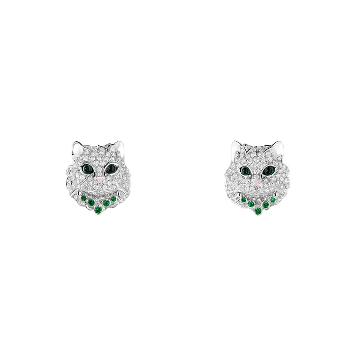 Wladimir貓咪耳環,18K白金/粉紅漆與黑漆/鑲嵌綠色沙弗萊石、綠瑪瑙、鑽石、黑色藍寶石/參考售價$1,010,000