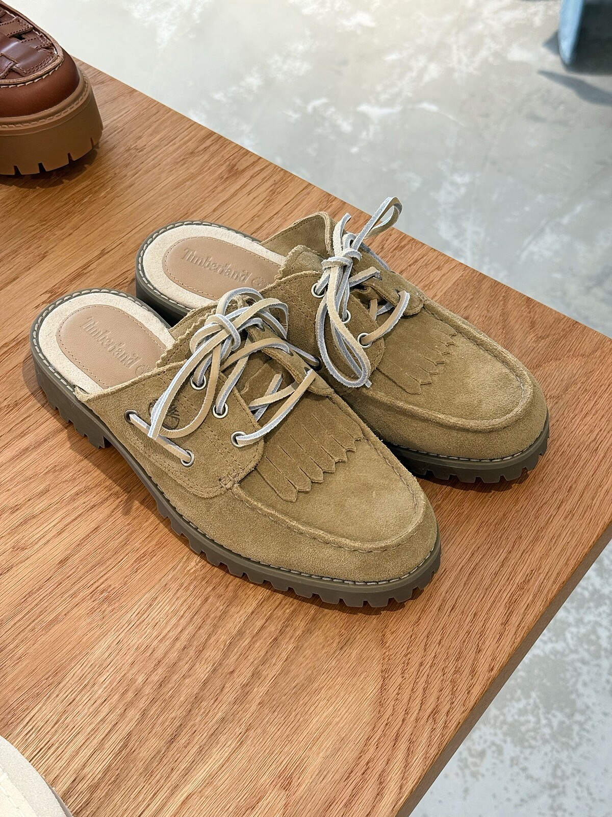 悶熱的夏季想保持造型感、又想要舒適透風,一雙隨便搭都好看的穆勒鞋絕對是你的救星。Timberland今年夏天便推出了許多穆勒拖鞋的選擇,除了上述款式,這雙由經典帆船鞋延伸的穆勒鞋款,編輯也一眼愛上!同樣注入了精巧的瑪莉珍元素,使中性基底變得活潑了起來,並同時保留住帆船鞋學院風、紳士雅痞的混血氣息,推薦女孩們可以搭配襪子穿著,怎麼穿怎麼Q。
