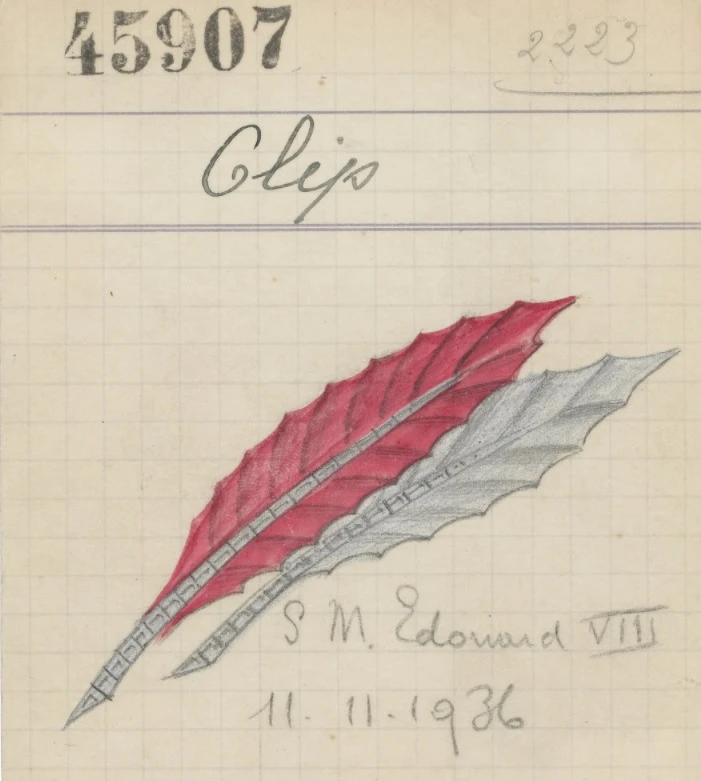 愛德華八世於1936年退位成為溫莎公爵,他在這一年委託梵克雅寶(VCA)特別訂製了許多華美珠寶贈與夫人,包括紅寶石和鑽石Cravate項鍊、藍寶石和鑽石Jarretière手鐲及鑲嵌鑽石及紅寶石與鑽石的Deux Plumes胸針。其中不能不認識的就是紅寶石與鑽石的Deux Plumes胸針。