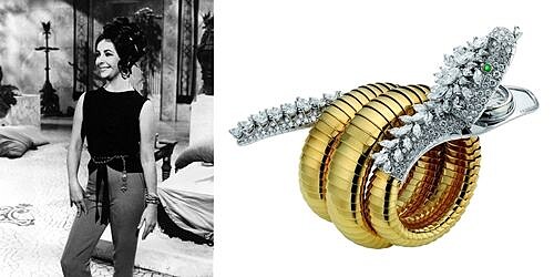 伊莉莎白泰勒曾說:「我願意在羅馬拍攝電影,就是因為寶格麗總店在羅馬。」她熱愛Bulgari珠寶,收藏它們也私心戴著它們拍電影,有哪些?《The V.I.P.s大飯店》裡令人驚艷的18.61克拉祖母綠胸針,還有出現在《埃及豔后Cleopatra》的蛇形珠寶腕錶。