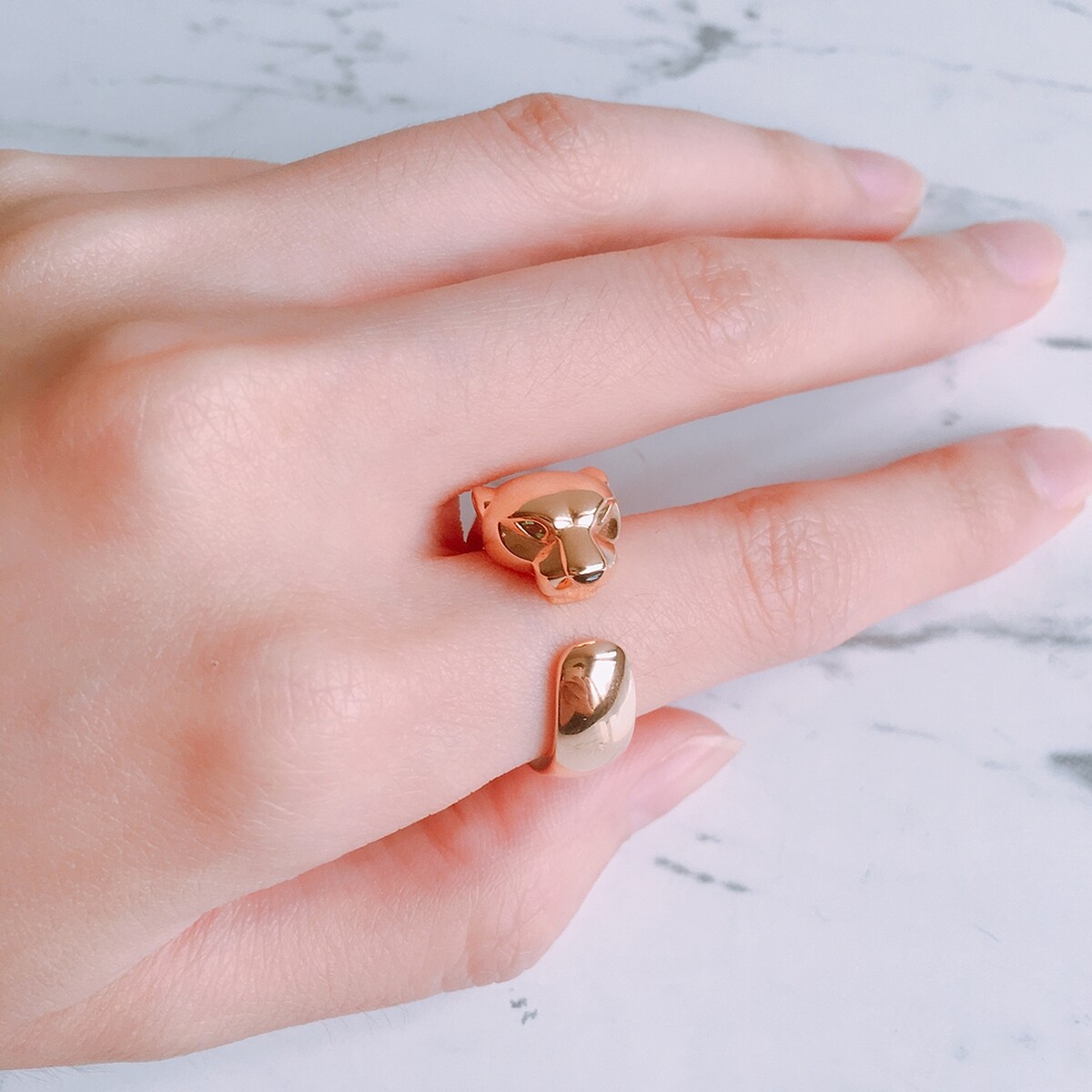 最新款「Panthere Lovée纏繞的豹」推出手環與戒指,K金款以K金打造主體,縞瑪瑙搭配黑色真漆描繪豹紋,眼睛則以綠色的沙弗萊石來點綴;鋪鑽款以縞瑪瑙描繪豹紋,眼睛是祖母綠。另一新款是神情較為溫和的「Sweet Demoiselle趴豹」項鍊與手鍊,預計將在11月正式上市。
