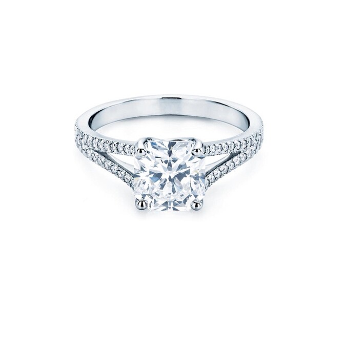 沒有任何一種鑲嵌法、婚戒設計能比它更廣為人知:誕生於1886年的Tiffany® Setting 六爪鑲嵌,揭開了鑽石戒指設計的新紀元,首創以醒目立體的鑲爪,將鑽石高高托起,目的在讓鑽石能全方面折射光源,有更好的火光表現,是無數新人在邁向人生新階段的首選,也幾乎成為了婚戒的經典代名詞,同時也是Tiffany & Co.獨家專利的設計。