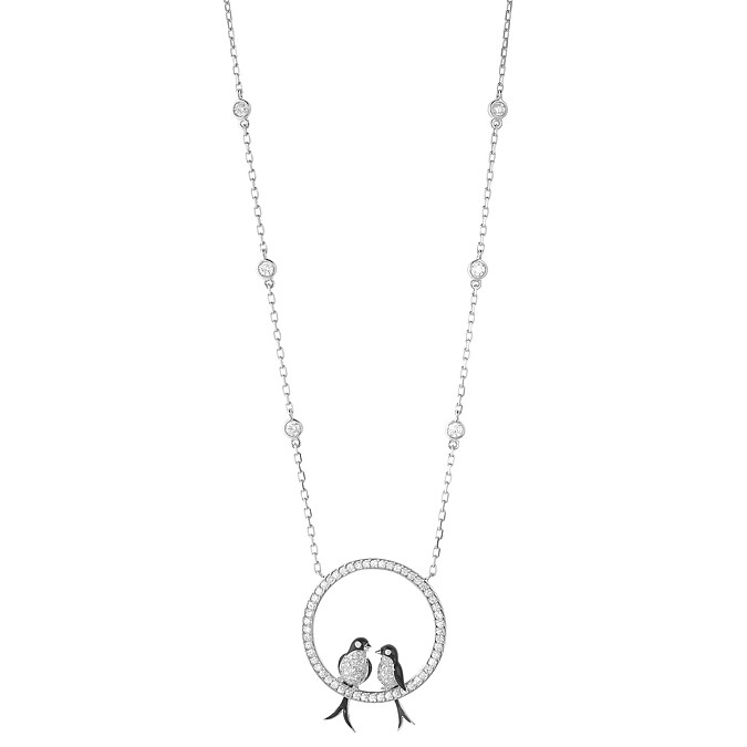 黑色琺瑯雕塑出燕子的漆黑的身軀和精巧的燕尾,並將鑽石鑲滿腹部。