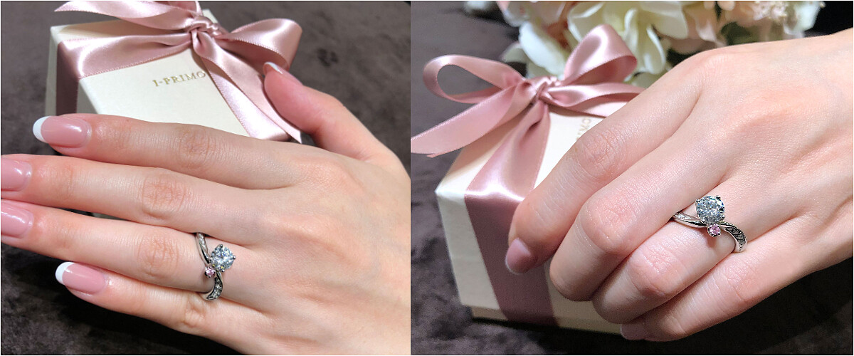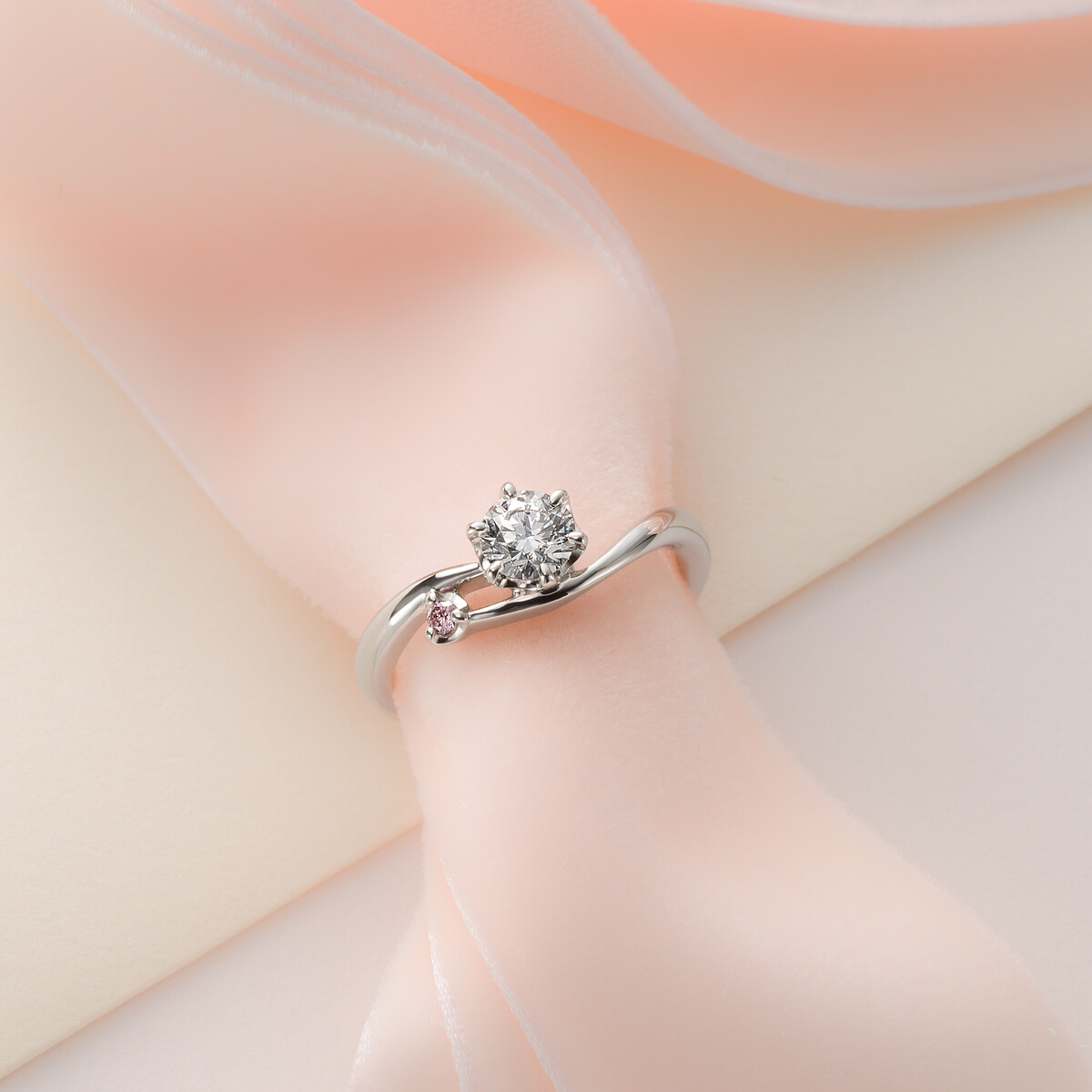 中央主鑽以恆星作為設計概念,粉紅鑽則圍繞在旁,個性化不對稱設計的搶眼特色是很受到喜愛的人氣戒款,帶點旋轉弧度又能修飾手指細長線條的細節,是M編試戴後就深深著迷的魅力之作。