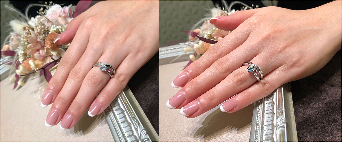 同樣的,SPICA訂婚鑽戒也很適合與LUCINA婚戒一起組合配戴,窄版戒環與流水扭轉線條的修飾實力,即便兩款戒指戴在一起也不會顯得臃腫笨重,加上取自結婚女神之名的幸福隱喻,用來守護兩人幸福更是意義非凡。