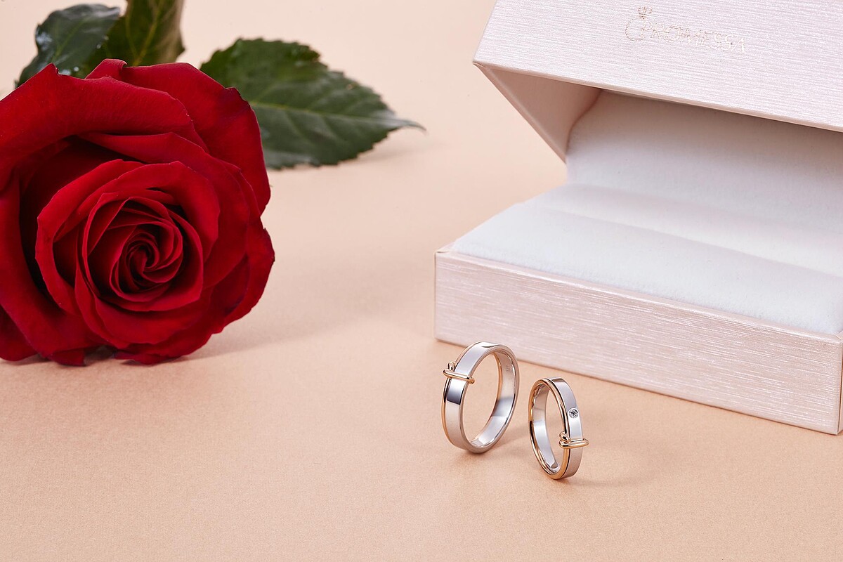 愛情不是別的,不過就是一同分享每個日子。點睛品Promessa 18K白金玫瑰金雙色「同心結」對戒為此而生,代表姻緣的紅線化為18K玫瑰金的編織繩結與白金戒指親密交纏,象徵永結同心、浪漫迷人的愛情。在日常中,牽起手,倆倆相望,怎麼也不厭,因為和所愛在一起的每一刻,都是最美好的時光。