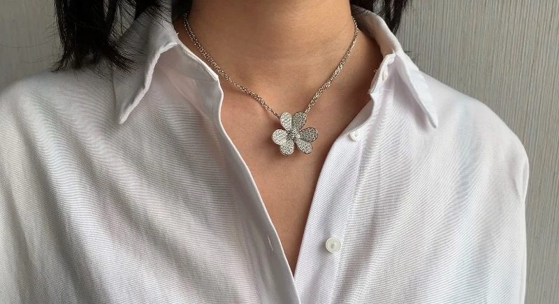 Frivole其實在2003年才正式成為Van Cleef & Arpels固定系列作品,以三片愛心形狀花瓣組出一朵金屬立體小花,花朵則以同樣尺寸或是或大或小排列,中央花蕾就用一或三顆鑽石(顏色D至F級,淨度IF至VVS級)來替代,其抽象樣貌,讓花卉這項不斷被用來做為設計的題材,更顯得時髦且符合現代穿搭需求。作品有鋪鑲鑽石或全金屬面,兩種不同詮釋花瓣的版本,全金屬面的金屬亮度實際的視覺效果相當令人驚艷—是梵克雅寶在1920年代就啟用的鏡面拋光技術,這項金屬拋光工藝讓光源看起來既溫潤又動感十足。若是鑲鑽版本,其鑲座皆以鏤雕方式處理,確保光線能靈活穿透寶石。