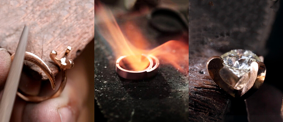 「心坎鑲」獨創的鑲嵌工藝,讓珠寶作品擁有饒富詩意與新意的視覺與觀點,更因此成功獲得珠寶作品專利設計權的殊榮。跳脫傳統的爪鑲底托支撐結構,加上利用力學的張力原理,以三個不到1mm寬幅的支點,將鑽石腰圍精準固定於三爪車溝間,每個鑲爪間的內外均呈現出心形空間,美鑚凌空坐落於三瓣心形鑲嵌之中,於指間散發出最閃耀的璀璨火光,這些細節都需要設計師事先充份掌握鑽石各角度面積,搭配多年經驗有默契的工藝師,精准掌握線條弧度與鑽石之間的平衡、角度定位以及鑽石多面集光的效果,才能打造出如此夢幻絕美的作品。