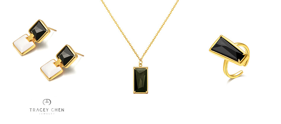 說到TRACEY CHEN的兩大經典系列,天然墨翡及幾何造型,大受都會女性好評,社群媒體更常見兩大系列蹤影。天然墨翡,看似低調夜墨色的珠寶,強光照下會發現其隱約透露綠的韻味,以金邊承捧的天然墨翡,是採用高檔冰糯種墨綠色翡翠,精細切割後,由簡約的設計感呈現輕奢珠寶最唯美的樣子。而大家喜愛的幾何系列,簡單大方,以拋棄傳統以圓形切割方法,用手工建構出3D不規則形狀的隨意切面,結合傳統與創新,也將溫暖的翡翠刻劃出時代女性的幹練感,可選擇尊貴的金色或時尚的玫瑰金收邊,將奢華、暖意、時尚感完美融合。