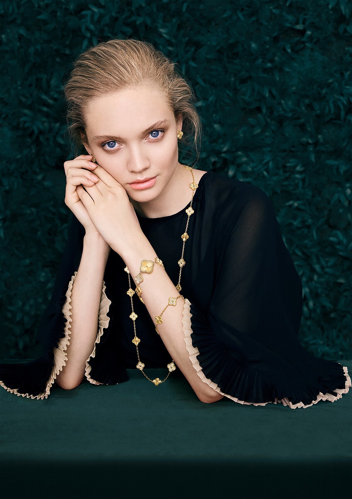 能夠深受全球女星與名人青睞、風靡50餘年的Alhambra系列珠寶,其簡約雋永的設計至今依舊經典,深具魅力。經典的四葉草輪廓,歷年來更透過不同的貴金屬材質,與彩色寶石及鑽石組合變換,設計出款式豐富、兼具日間及晚裝風格的日常珠寶,易於搭配,彷彿佩戴Alhambra珠寶就能獲得好運與力量般,像是一種儀式,時刻提醒自己,已成為一位充滿自信、煥發魅力光彩的理想女性。