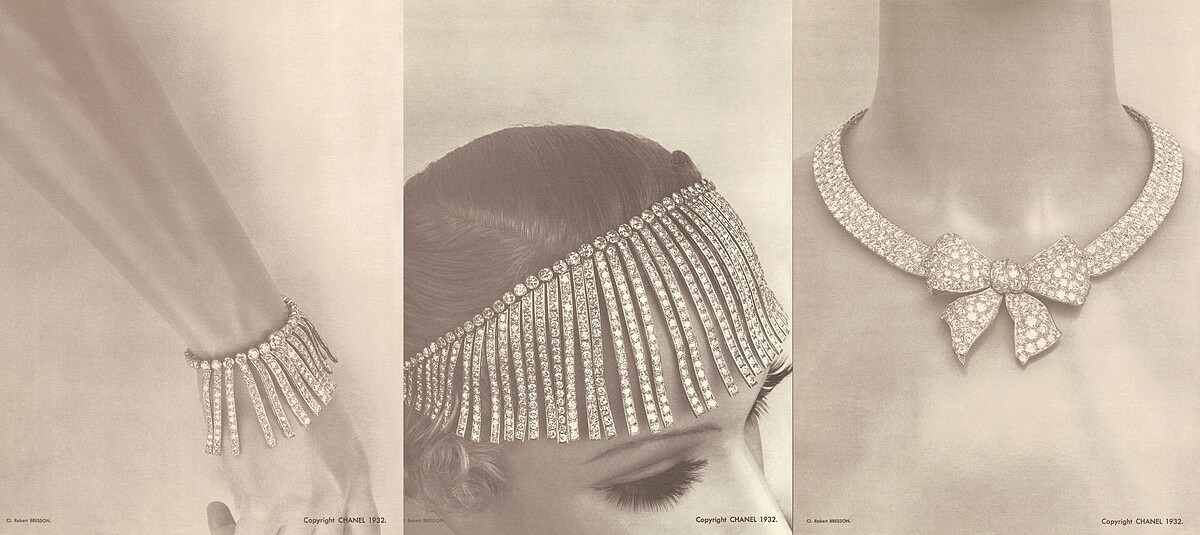 先讓我們回溯到1929年-1933年間.... 當時正歷經第二次世界大戰前最為嚴重的經濟大蕭條(Great Depression),對已開發國家和開發中國家都帶來了毀滅性衝擊,甚至在1929年時席捲起一股華爾街股災,成為二十世紀持續時間最長、影響最廣、強度最大的經濟衰退。1932年,倫敦鑽石工會為提振市場,邀請當時設計備受仕女喜愛的香奈兒女士揭開人生第一場珠寶展演1932 Bijoux de Diamants,也為傳統珠寶領域開創一條嶄新道路。
