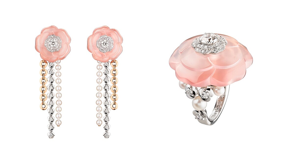 1923年,山茶花首次在香奈兒女士創作的雪紡小黑洋裝上綻放,爾後便以千變姿態持續被各種設計演繹;在珠寶創作中,更透過如高科技精密陶瓷、瑪瑙、珊瑚、蛋白石、珍珠母貝、藍寶石及紅寶石....等珍稀材質與工藝技術華麗展演。在香奈兒的國度裡,山茶花沿途盛開著優雅軌跡,成為永不凋謝的傳奇。